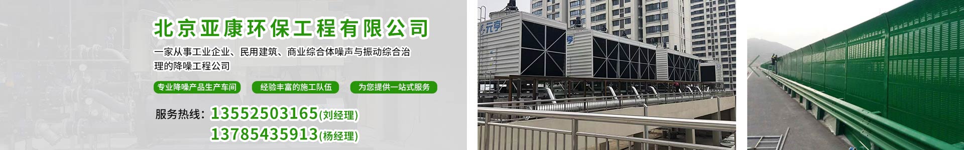北京亚康环保工程有限公司是一家从事工业企业、民用建筑、商业综合体噪声与振动综合治理的降噪工程公司。在全国范围内设计及施工过大量市政、楼宇、道路、各类工矿企业等减振降噪工程。公司配套有专业降噪产品生产车间、设计研发团队及经验丰富的施工队伍,可为您提供一站式服务,为创造健康绿色的声环境保驾护航。